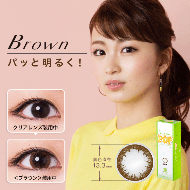 カラコン エルコン ワンデー POP ポップ 1箱30枚入 14.2mm 度あり 度なし フチあり 岡崎紗絵 ショコラ&ブラウン 1DAY L-CON カラー コンタクトレンズ 使い捨て 1日
